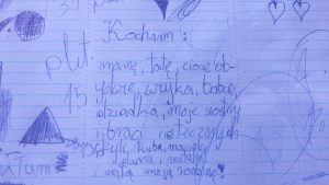 Dar rodziny 17 października 201617 maja 2024 zaFAScynowanaBlog Na podkładce z biurka córki znalazłam spontaniczne wyznanie. W takich momentach wiem, że Basia również traktuje naszą rodzinę jako dar. Wiem, że o tym myśli, czasem coś powie, czasem zapyta, a czasem znajdujemy takie właśnie dowody na piśmie: